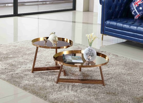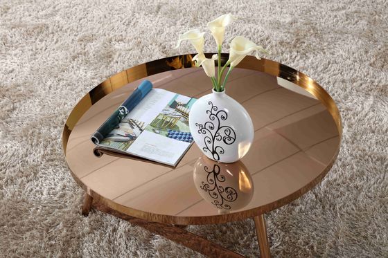 طراحی داخلی لوکس قاب فولادی ضد زنگ میز قهوه رز طلایی براق گرد برای مبلمان اتاق نشیمن