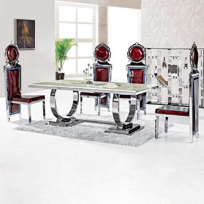 میز ناهار خوری مبلمان منزل لوکس مدرن نقره ای سایز 150*90*75
