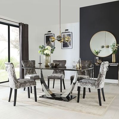 میز ناهار خوری نقره ای از جنس سنگ مرمر مشکی کروم ss در سایز 150*90*75