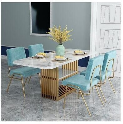 ست میز ناهار خوری رویه مرمری نوردیک میز مستطیلی مدرن ترکیبی میز و صندلی 150*90*75