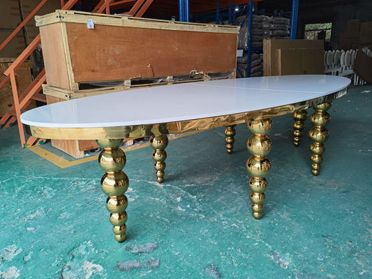 میز ضیافت ام دی اف بیضی شکل Ss پاهای توپ طلا