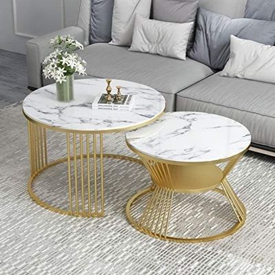 میز قهوه گرد رویه شیشه ای مرمر با میز قهوه خوری طلایی طراحی زیبای ذخیره سازی
