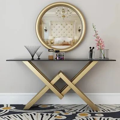 کنسول لوکس میز کنسول باریک مستطیلی سفید رنگ طلایی 150*45*80