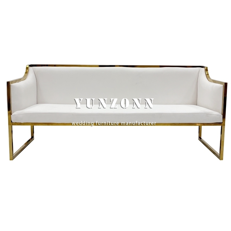 | Product Name | Upholstered Gold Stainless Steel Accented White Leather Wedding Sofa for Rental Event |