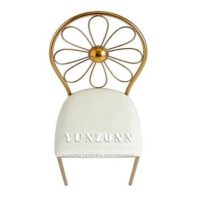 | نام محصول: | صندلیهای عروسی فلزی انباشته مدرن عمدهفروشی با قاب استیل ضد زنگ طلایی چرم PU سفید صندلی ناهارخوری هتل در فضای باز |