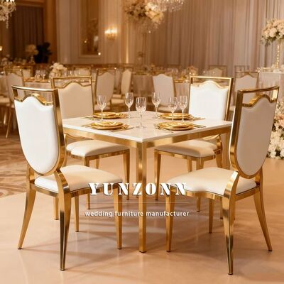 مبلمان تالار عروسی اروپایی مدرن قاب استیل ضد زنگ صندلی ناهارخوری لوکس سفید |
