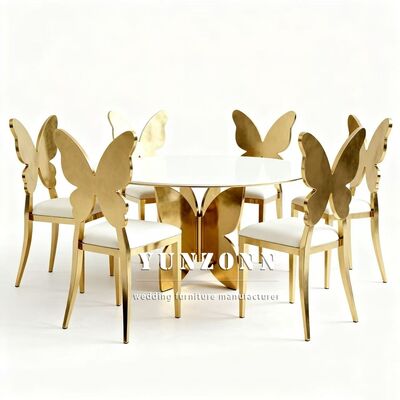 تولید حرفهای صندلی ناهارخوری استیل ضد زنگ با پشتی پروانهای، پشتی طلایی، صندلیهای عروسی و رویدادها |