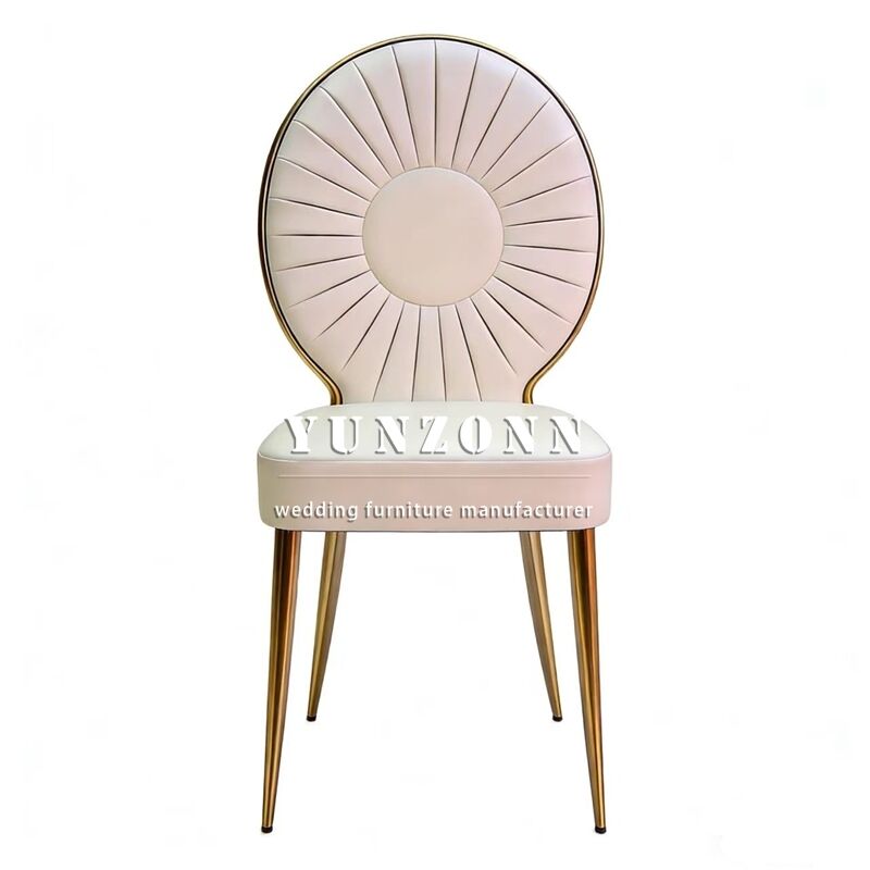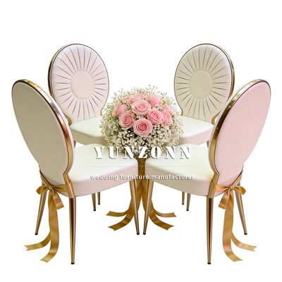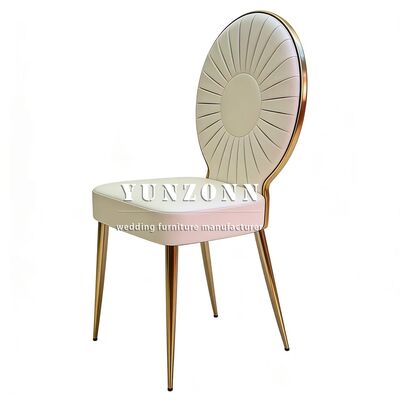 | نام محصول: | فروش عمده صندلی های عروسی لوکس استیل PU طلایی برای مراسم های پذیرایی |