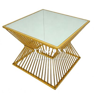 Top Sale Fashion Design Square Shape Glass Top Stainless Steel Wedding Cake Table 36