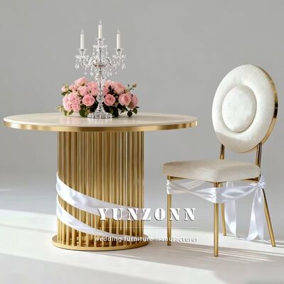 | نام محصول: | میز کیک عروسی طلایی لوکس مدرن جدیدترین میز گرد ساید فولاد ضد زنگ برای مبلمان داخلی / خارجی هتل و عروسی |