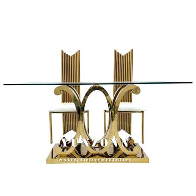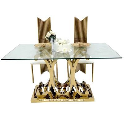 | نام محصول: | مجموعه میزهای پذیرایی شیشهای مستطیلی لوکس مدرن با پایههای طلایی، میزهای استیل ضد زنگ برای تزئینات عروسی و ضیافت رویدادها |