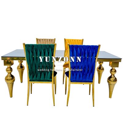 | نام محصول: | طلای فولاد ضد زنگ قاب آینه شیشه بالای میز عروسی 10 نفر میز عروسی |