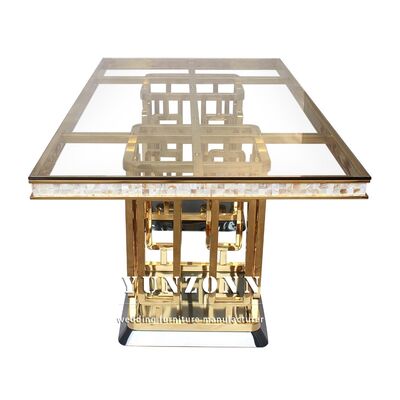 | نام محصول: | هتل لوکس سالن جشن عروسی میز 8 نفره میز ناهار خوری فولاد ضد زنگ برای مراسم |