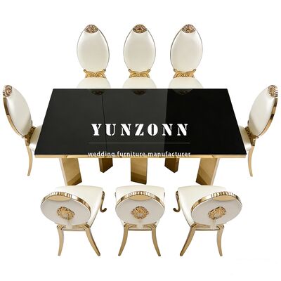 | نام محصول: | فروش مستقیم کارخانه مبلمان صندلیهای پشتی بلند کلاسیک روکش طلای فولاد ضد زنگ مناسب برای عروسی و ضیافت |