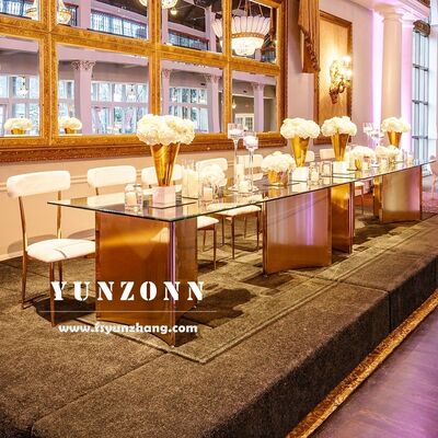 | نام محصول: | مبلمان لوکس با طراحی جدید، پایه برنجی، میز ناهار خوری طلایی مستطیل شکل از جنس فولاد ضد زنگ |