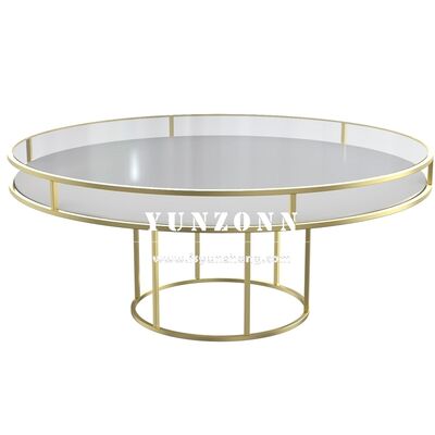 | نام محصول: | پایه کیک استیل طلایی با رویه شیشه ای با کیفیت بالا برای تزئین جشن عروسی |