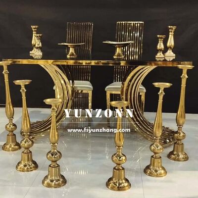 | نام محصول: | میز ناهار خوری شیشه ای لوکس طلایی استیل ضد زنگ برای استفاده در هتل مبلمان رویداد شیک |