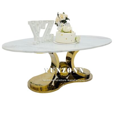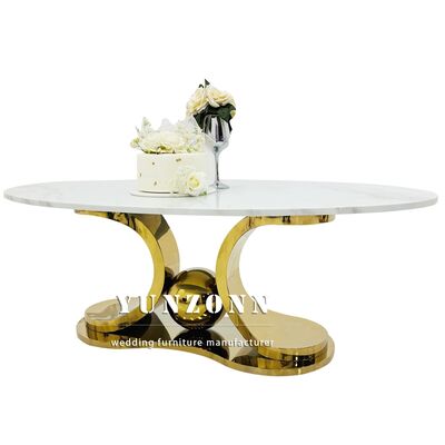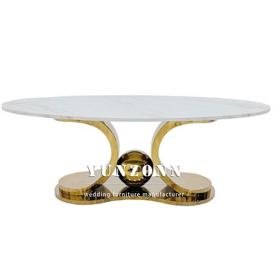 | نام محصول: | میز قهوه ای لوکس مبلمان هتل میز مرمر بالای طلا فلز فولاد ضد زنگ طرفی بیضوی میز قهوه چای |
