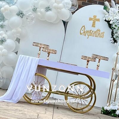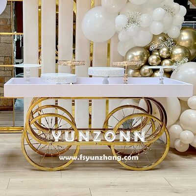 | نام محصول: | سبک گاری نمایش آبنبات استیل طلایی مدرن طراحی شده برای دسر و غذا، مناسب برای مراسم عروسی، پذیرایی در فضای باز - توصیه شده |