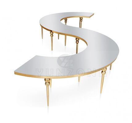 | نام محصول: | صندلی میز غذاخوری مدرن شکل S مجموعه رستوران عروسی شیشه فلز مبلمان هتل برای استفاده در سالن های بیرونی |