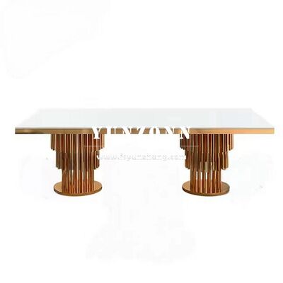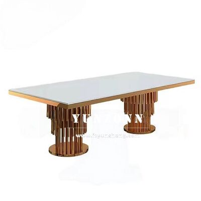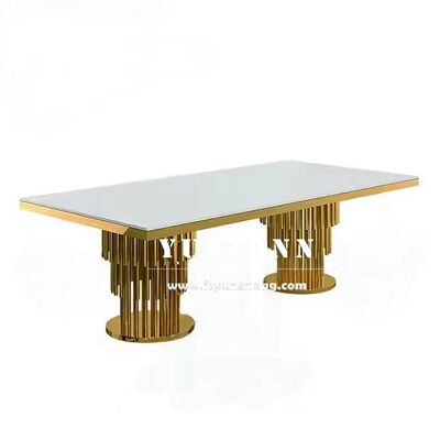 | نام محصول: | میز ناهار خوری مدرن از فولاد ضد زنگ طلا با طراحی پایه پایه برای جشن های بیرونی عروسی ها و رویدادهای هتل |