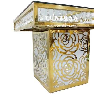 | نام محصول: | مبلمان جشن عروسی لوکس قیمت کارخانه فولاد ضد زنگ مربع پایه گل رز آینه شیشه کریستال کیک میز |