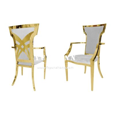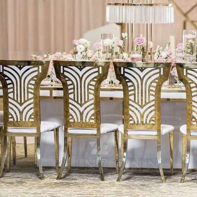 | Product Name: | Flower Pattern Back Wedding Furniture Gold Metal Banquet Dining Chair Modern Luxury |