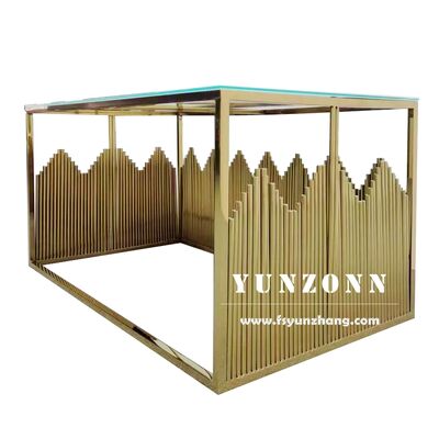 | نام محصول: | طرح جدید فوشان هتل مبلمان عروسی طلا فولاد ضد زنگ عروس و داماد مربع میز غذا خوردن |