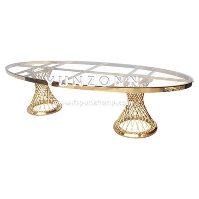 | نام محصول: | قطعات مرکزی مدرن از فولاد ضد زنگ برای میز ناهارخوری رستوران با طراحی شیشه ای بیضی با سبک لوکس برای هتل های عروسی در فضای باز |
