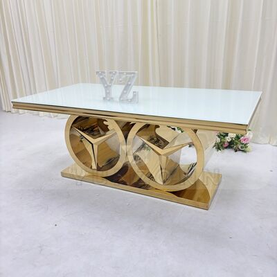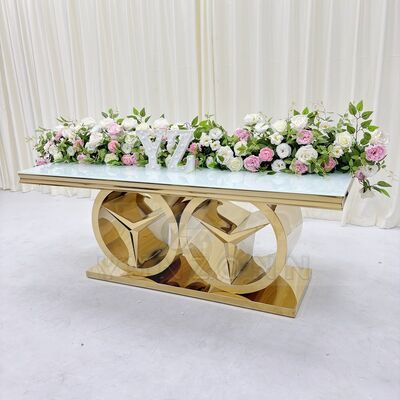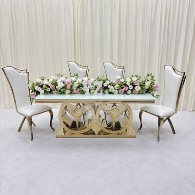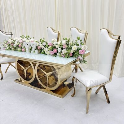 | نام محصول: | میز ناهار خوری عروسی مدرن با قاب استیل ضد زنگ، مبلمان جدید هتل فضای باز برای مهمانی ها و رویدادها با شیشه و MDF |