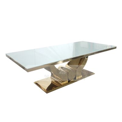 | نام محصول: | مبلمان میز عروسی مدرن طلایی فولاد ضد زنگ برای فضاهای ضیافت و رویداد، مبلمان هتل |