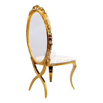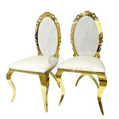 | نام محصول: | صندلیهای فلزی مجلل اکریلیک با طراحی جدید با قاب فولاد ضد زنگ طلایی X شکل و پشتی بیضی ساخته شده از چرم مصنوعی |