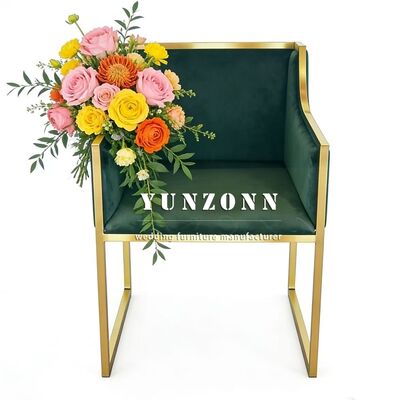 | نام محصول: | باغ در فضای باز رستوران هتل ضیافت اتاق غذا آشپزی مبلمان طلای فولاد ضد زنگ کف پارچه مخملی سبز تیره صندلی عروسی |